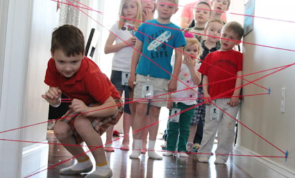Estenda barbantes por um cômodo em várias direções e peça para a criança tentar passar pelo meio deles sem tocá-los, como naqueles filmes em que o herói não pode deixar o alarme disparar. Registre o tempo que ela leva e a incentive a quebrar seus próprios recordes.