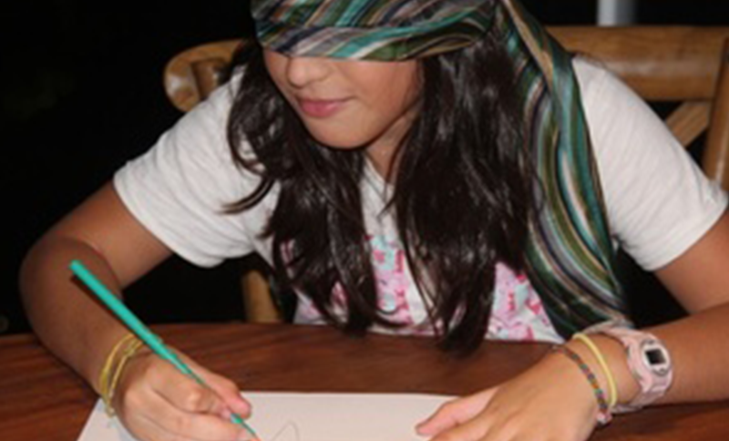 Primeiro, vende os olhos da criança e a posiciona diante de uma folha de papel e alguns lápis de cor. Em seguida, lance um desafio, por exemplo, “quero ver você desenhar uma árovore sem olhar”. A diversão é garantida. Classificação indicativa: 12 anos
